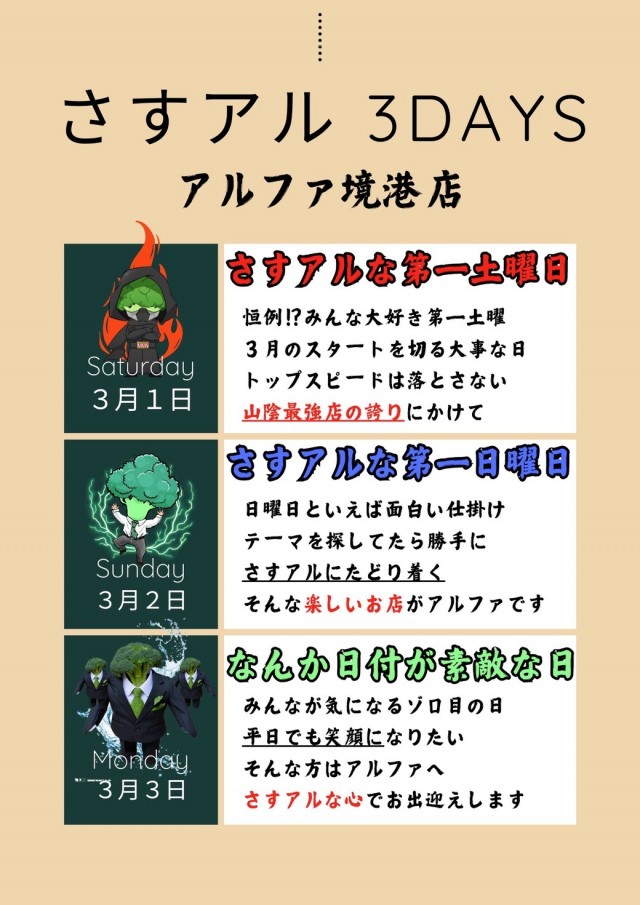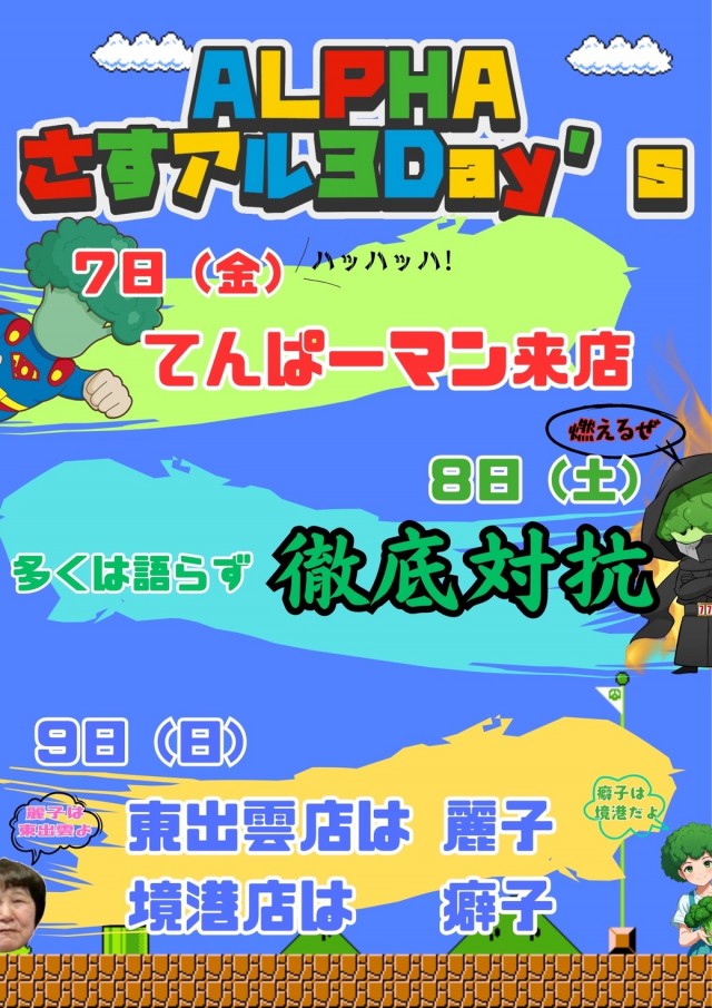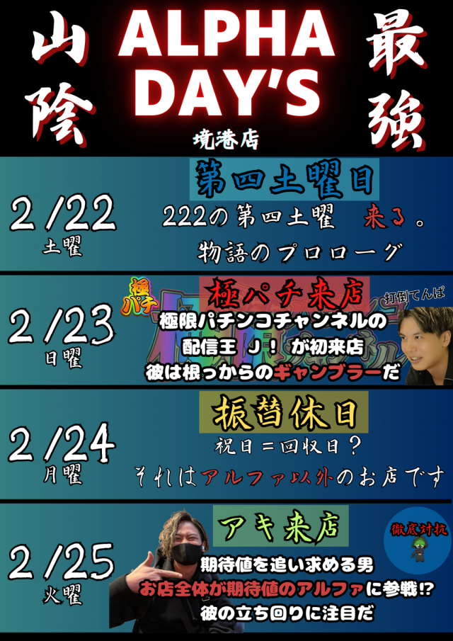 明日、2月22日土曜日は!『ALPHA DAY’S』