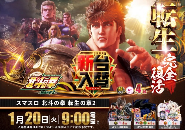 1/20(火)新台入替 L北斗の拳転生の章2など4機種導入!