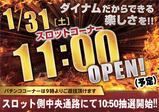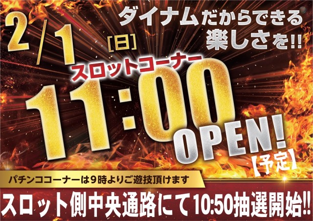 本日スロットコーナー全台時差開店 11時開店予定!