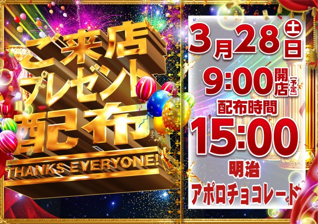 本日3/28(土)ご来店プレゼント配布(予定)!