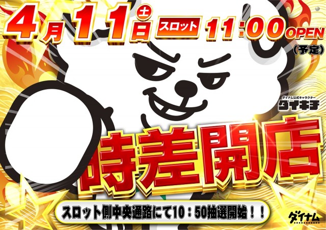 明日スロットコーナー全台時差開店 11時開店予定!