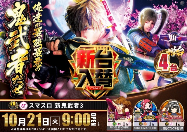 10/21(火)新台入替 L新鬼武者増台他、計4機種導入予定