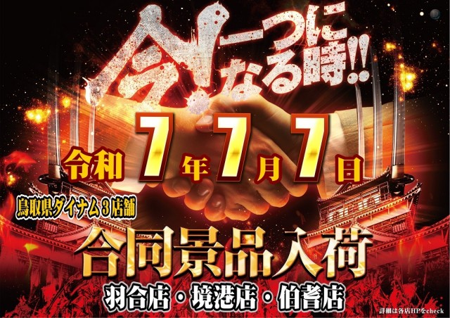 7月7日(月)鳥取県ダイナム合同景品入荷予定!