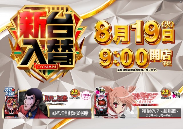 本日新台入替 eルパン銭形・P緋弾のアリアLT導入予定!