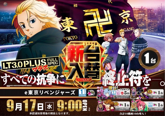 本日新台入替 e東京リベンジャーズ他、計10機種導入予定!