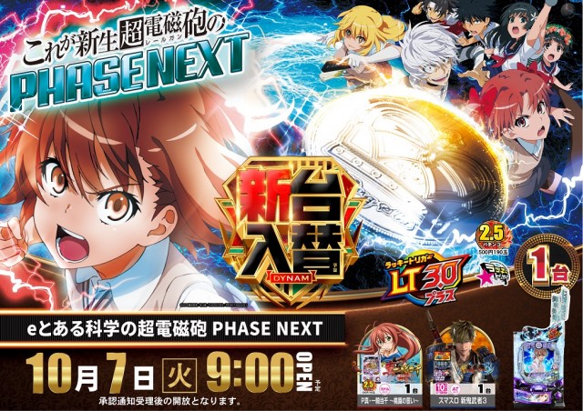 本日新台入替 eとある科学の超電磁砲他、計3機種導入予定!