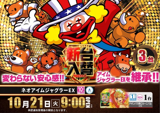 本日新台入替 ネオアイムジャグラーEX他、計2機種導入予定!