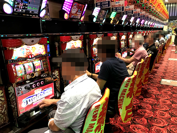 「マイジャグラーⅢ」や「ゴーゴージャグラー」など、ジャグラーシリーズもにぎわいをみせ、フロア一帯で活気のあるシーンを目撃している。