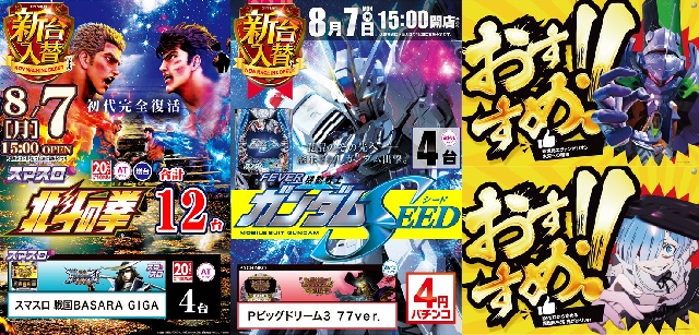 7日 新台入替 15時開店 スマスロ北斗増_ガンダムSEED