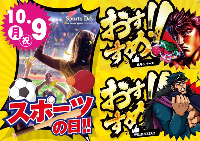 10/9(月)スポーツの日 9時開店(予定)是非ご来店下さい