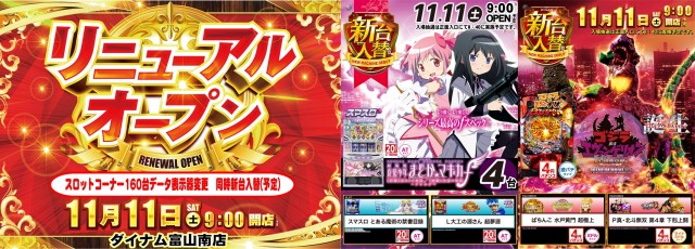 明日11日リニューアルオープン 9時開店 同日新台入替
