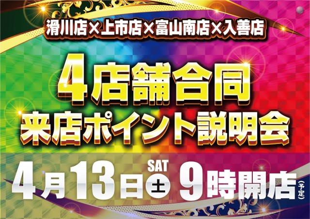 13日 4店舗合同来店ポイント交換説明会 9時開店予定