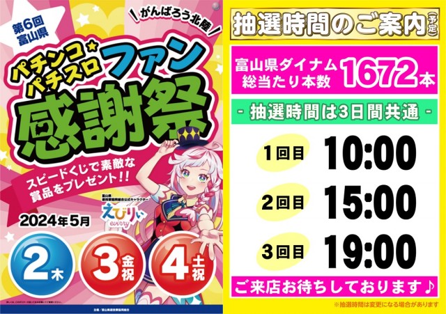 5/2(木)~5/4(土) ファン感謝デー♪ 9時開店予定