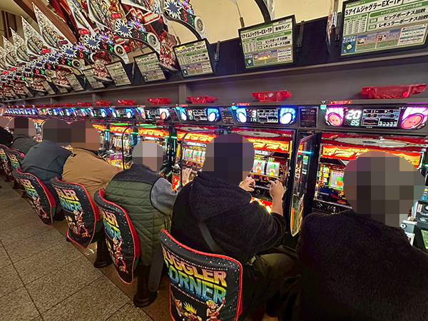 プレイヤーでにぎわう店内を見渡すと、パチンコ・パチスロともに明るい雰囲気が漂っていた。