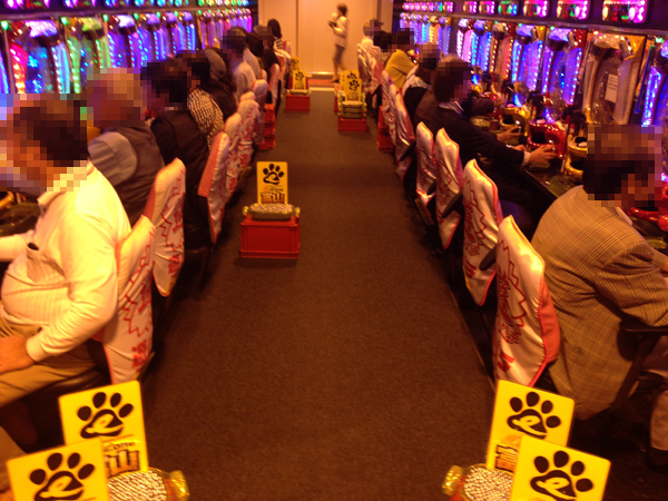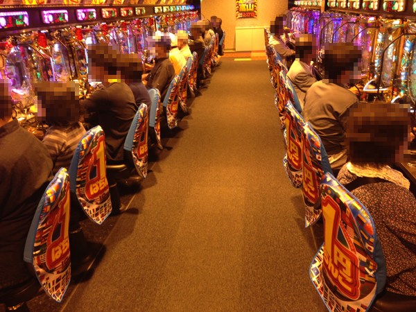 一般入場が終わり店内に入ると、パチンコファンの耳には馴染みのある楽曲が流れており、その荘厳な音に乗り人気機種である「CR牙狼 金色になれ」のコーナーに足を向けるプレイヤーの姿が目立った。