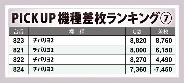 続いてはプラス台比率の高さや突出した好成績台で目立った7機種にスポットを当てよう。