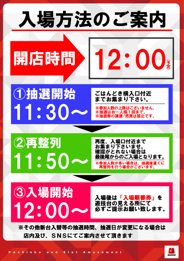 マルハン富山インター店:27日入場抽選予定時間は8時30分!