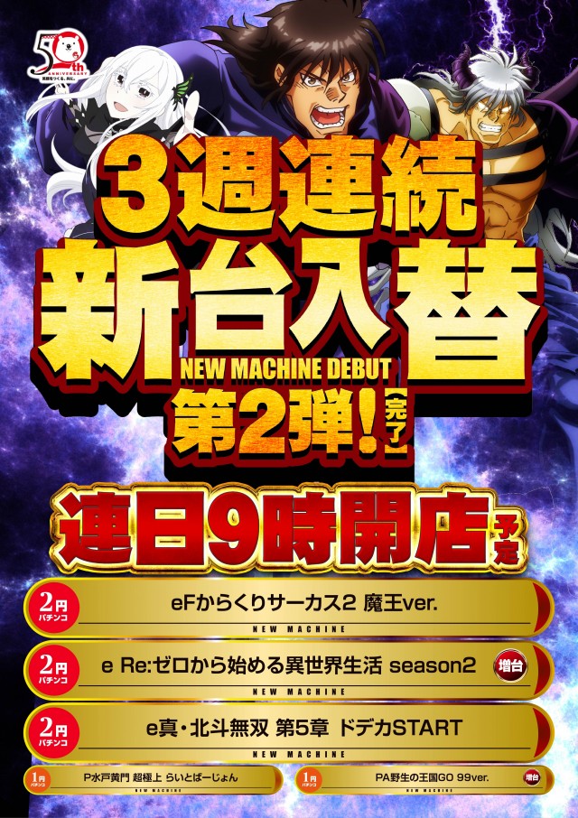 明日☆三週連続新台入替第三弾☆全館15時開店(予定)