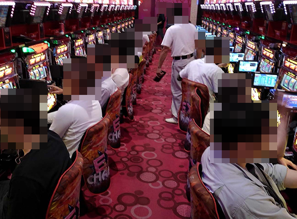 「バジリスク~甲賀忍法帖~絆」や「ミリオンゴッド-神々の凱旋-」など、いくつもの機種が大にぎわいとなっていた。