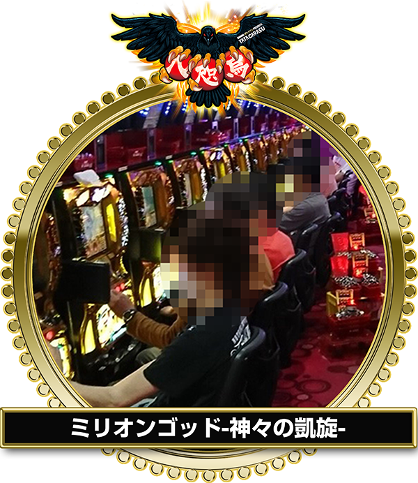 3本足で捉えられし「ミリオンゴッド-神々の凱旋-」、「バジリスク~甲賀忍法帖~絆」、「沖ドキ!」。