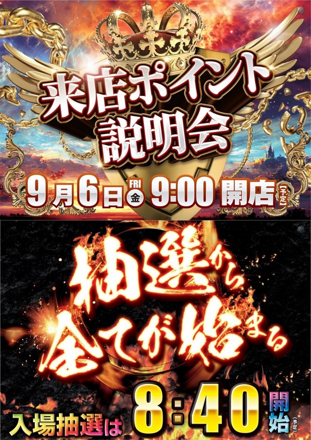 明日来店P交換説明会実施!抽選は8:40より開始!