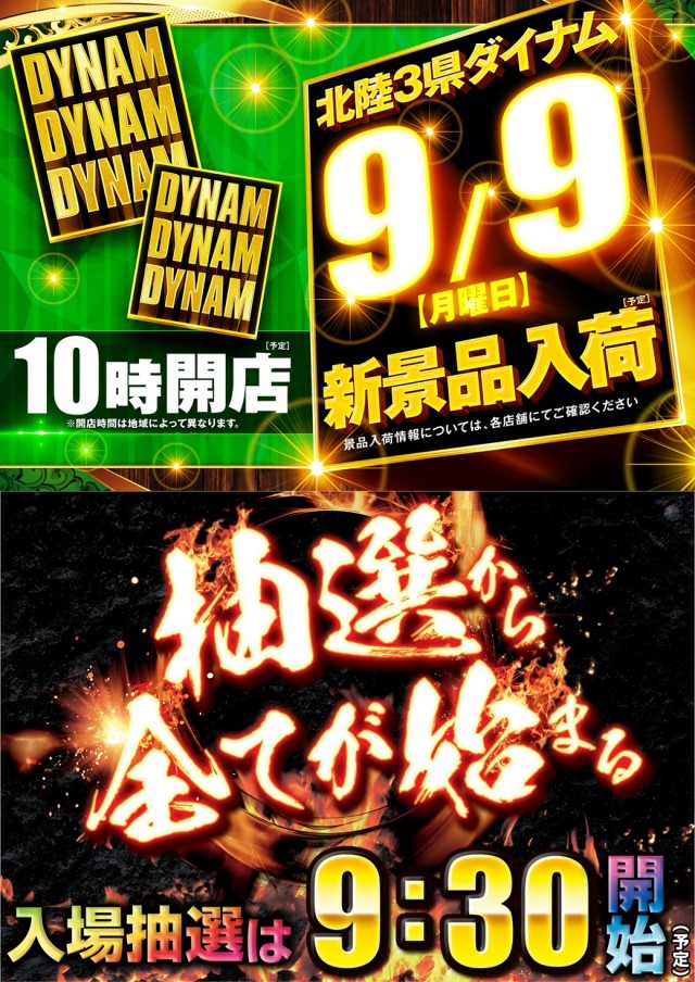 平日9:00開店時は先着順入場 土日祝日 8:40抽選開始 8:50再整列 9:00入場開始 新台入替 14:40抽選開始 14:50再整列 15:00入場開始 |