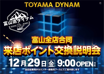 29日(金)富山ダイナム合同来店 P 交換会 9 時開店予定