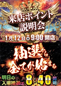明日12日(金)◆来店ポイント説明会◆入場抽選8:40~