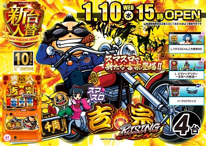 本日新台入替 15時開店予定L吉宗ライジング他10機種16台