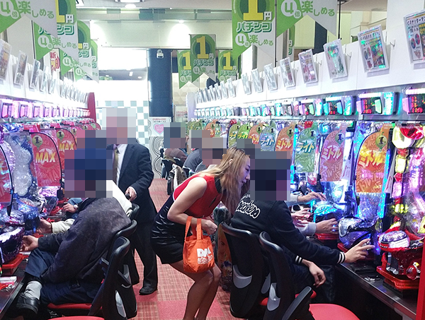 1円パチンコにも大勢の人が集まっており、こちらもほぼ満席となっていた。