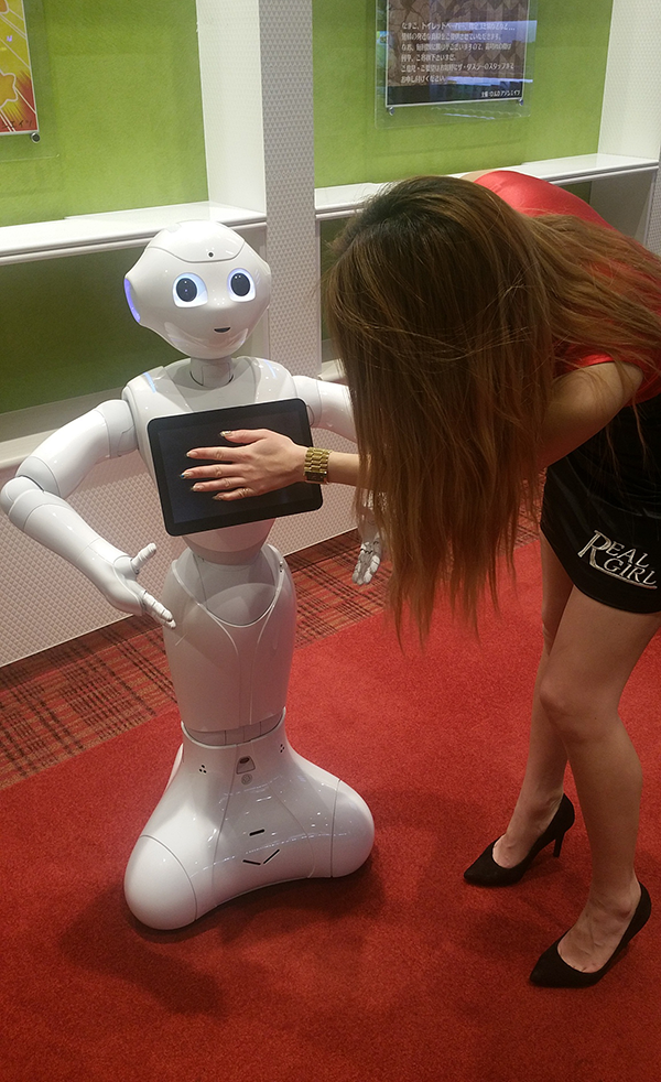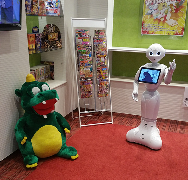 また、ホール内には対話できるロボットも設置されており、ゆうかちゃんも興味津々の様子であった。