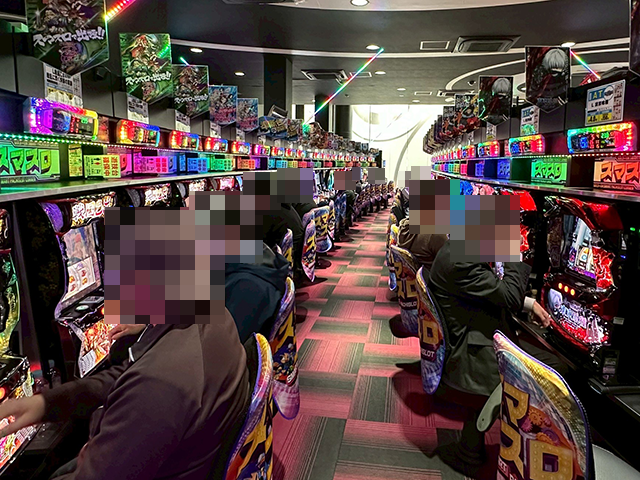 取材時は「スマスロ モンスターハンターライズ」が満席に近く、シマ内は明るいムード。