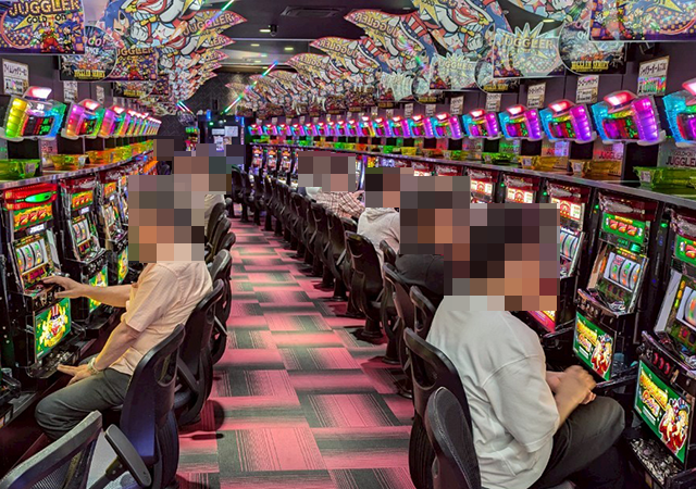 「ゴーゴージャグラー3」などに、持ち玉を使って遊技をおこなっている姿があった。
