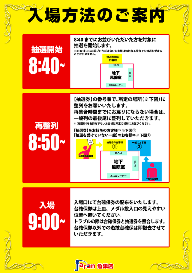 通常時8時40分抽選開始!入替時14時40分抽選開始! |
