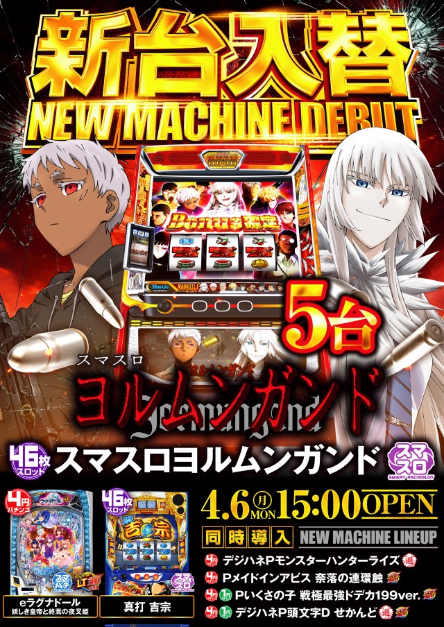[4]パチ:200台 [1]パチ:160台 [0.5]パチ:40台 [46枚]スロ:260台 [5] スロ:40台 |