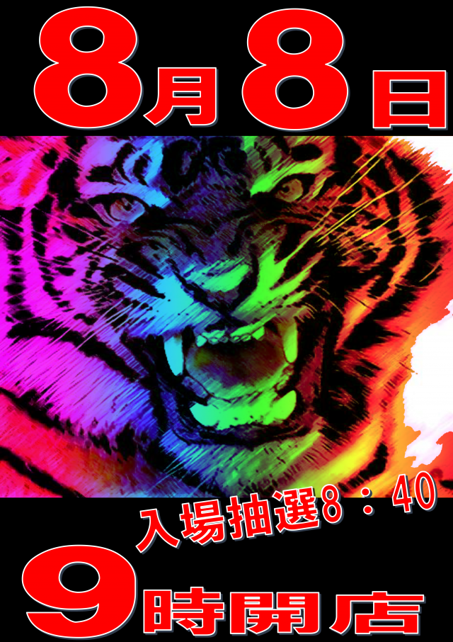 本日あさ9時開店☆8時40分入場抽選開始!タイガーファイッ!