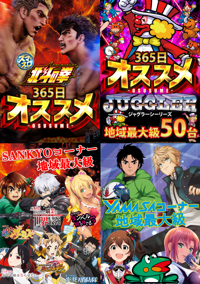 [4]パチ:200台 [1]パチ:160台 [0.5]パチ:40台 [46枚]スロ:260台 [5] スロ:40台 |