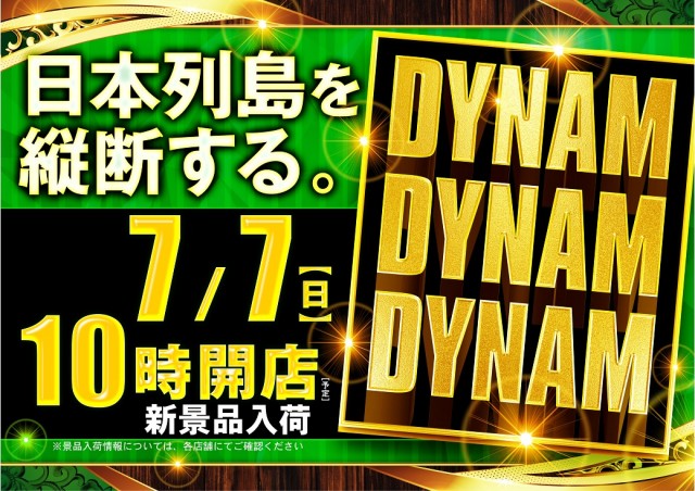 7/7(日) 石川県ダイナム全店 新景品入荷予定!