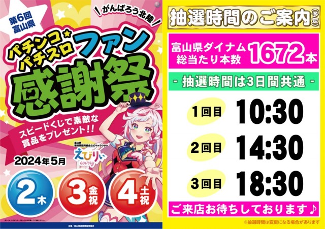 6/6(木) ダイナム北陸3県 新景品入荷!10時開店予定
