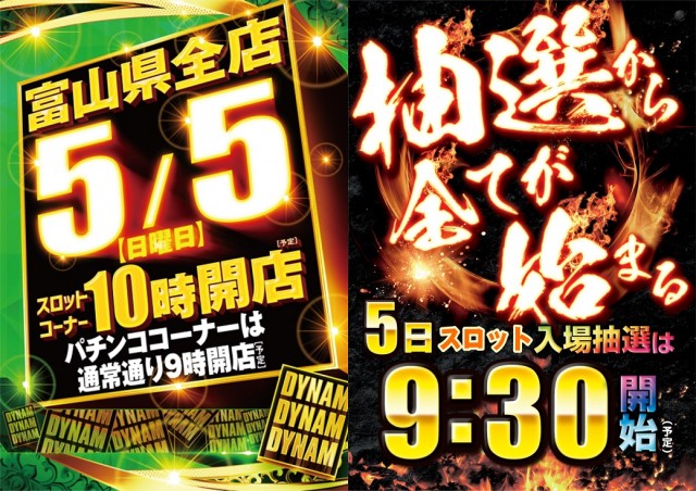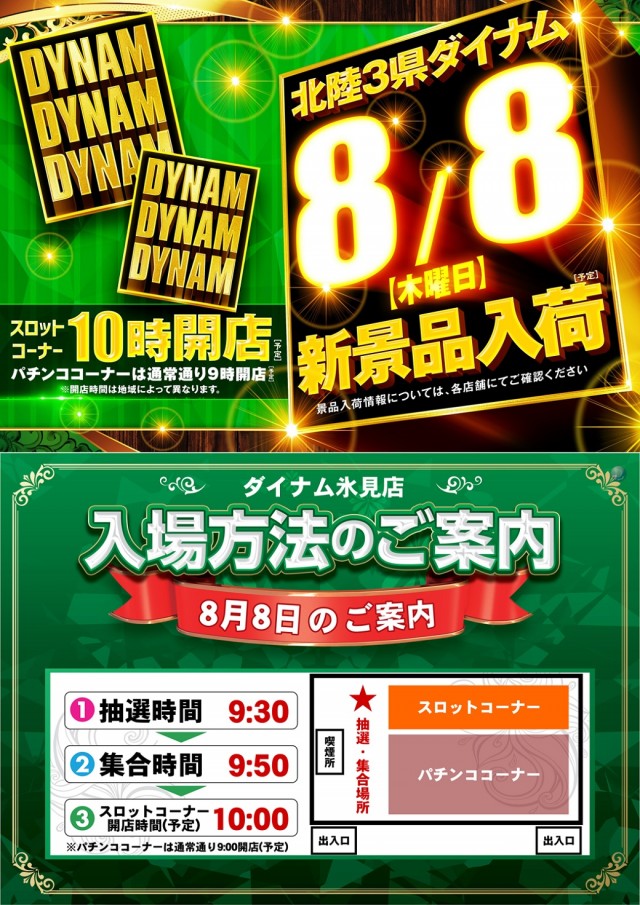 8/8富山県ダイナム スロットコーナー10時開店予定!