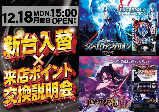 明日18日 新台入替&来店ポイント交換説明会 15時開店予定