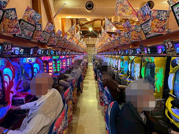 取材時は既に多くのプレイヤーが集結し、パチンコ・パチスロを問わずにぎやかな状況となっていた。