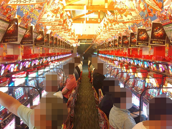 取材時は既に多くのプレイヤーであふれており、パチンコ・パチスロを問わず楽しげな表情でいっぱいだった。
