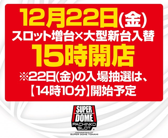 本日12月22日 ☆15時開店☆ スロット増台&大型新台入替