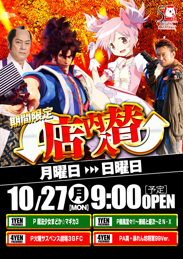 10月21日(火)☆新台入替☆全館15時開店(予定)