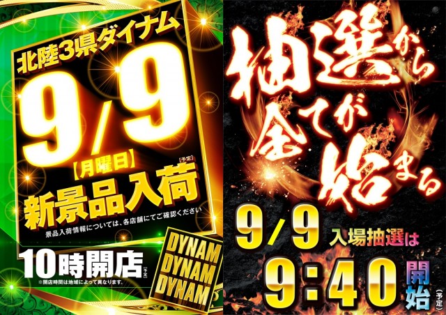 9/9(月) 10時開店予定!北陸3県ダイナム 新景品入荷!