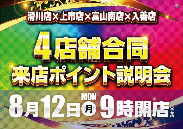 明日8/24(土) 9時開店 4店舗合同来店ポイント!