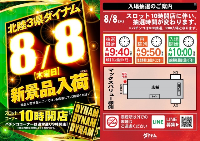 10/10 富山県ダイナム スロットコーナー10時開店予定!