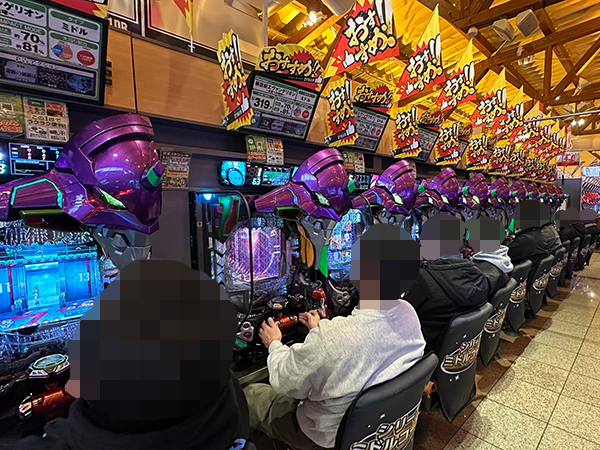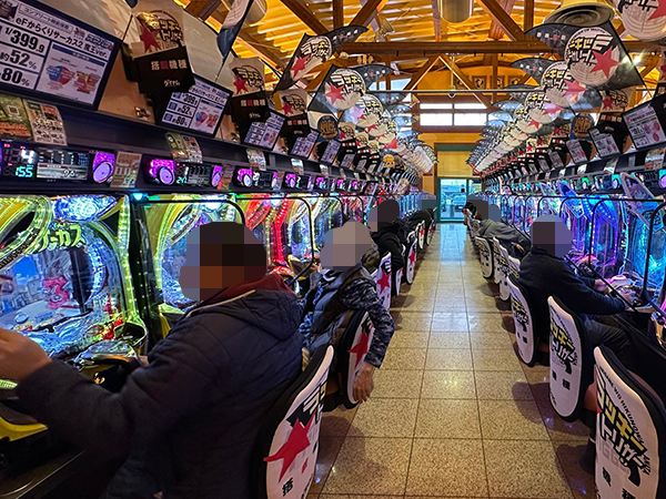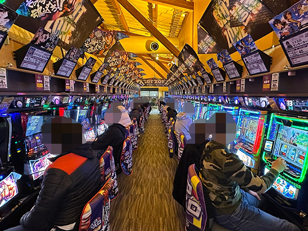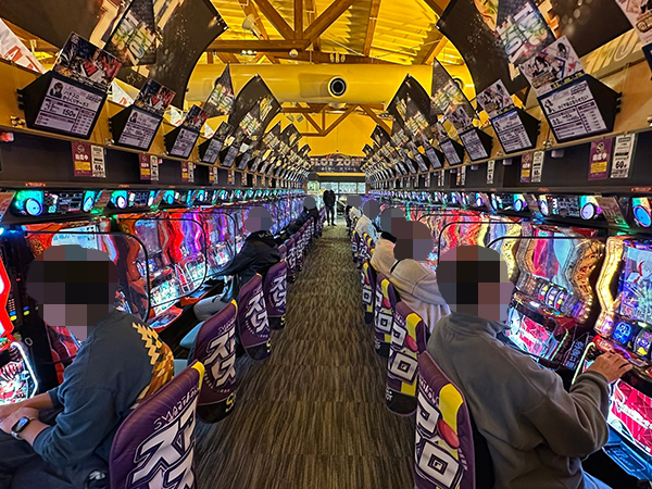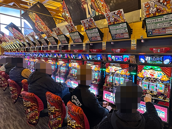 取材時は既に多くのプレイヤーが集結し、パチンコ・パチスロを問わずにぎやかな状況となっていた。