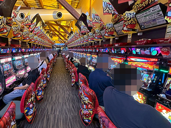 取材時は既に多くのプレイヤーが集結し、パチンコ・パチスロを問わずにぎやかな状況となっていた。